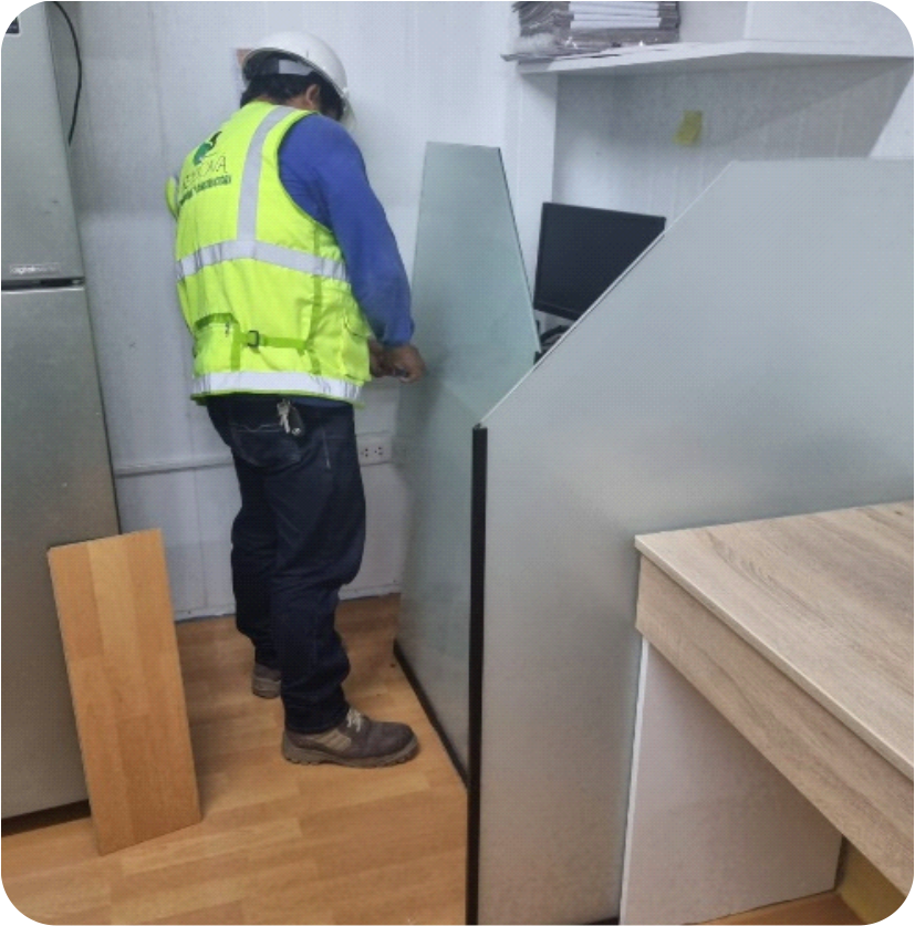 • Armado y acabado en drywall, baldosas para cielo raso, tabiquería, asegurando una construcción sólida y duradera.